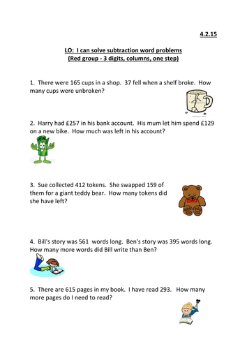 This guided lesson on subtraction was designed by our team of curriculum experts to reinforce first graders' understanding grade 1 word problems. Here you will find a wide range of free printable subtraction worksheets, which will help your child practice solving a range of subtraction word problems using numbers up to 20.